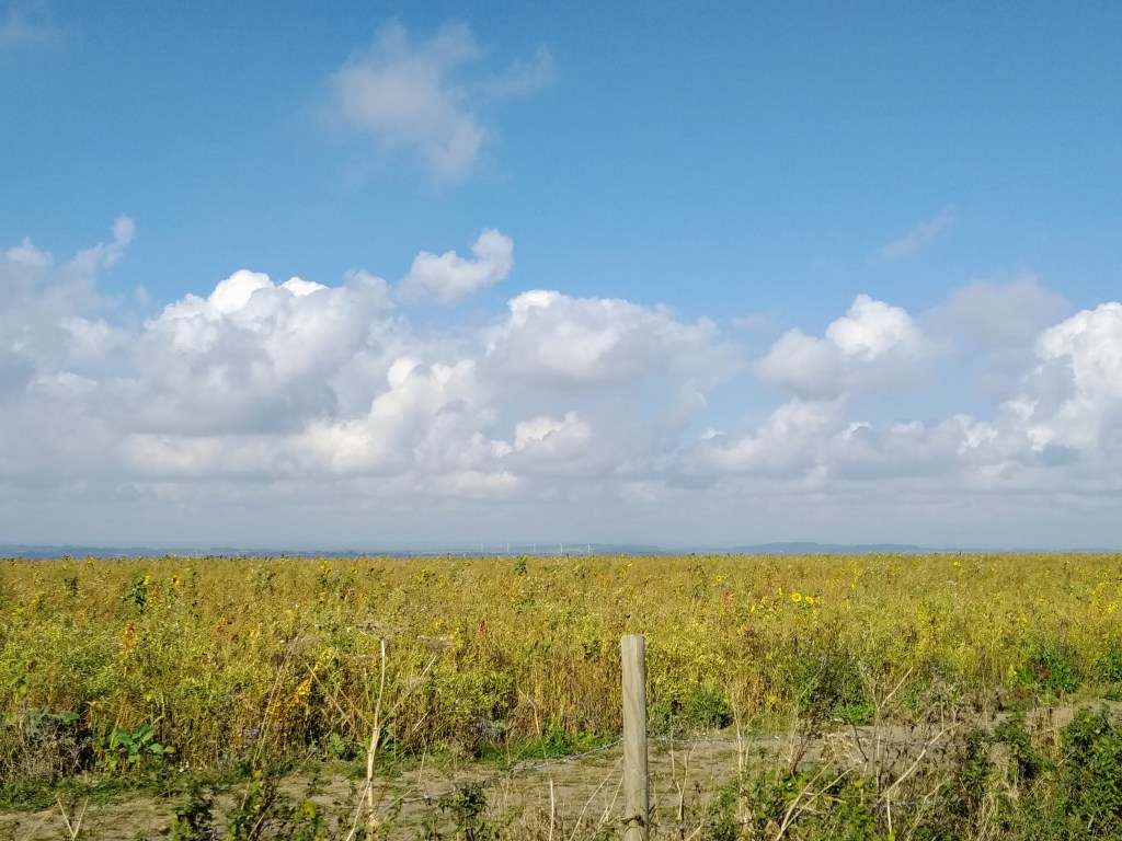 Later in the afternoon, we pass what is without a doubt the most gorgeous field of fading sunflowers and wild, weedy blooms I’ve ever seen. It is shimmering and golden and when we stop at its side, we see that it’s vibrant with life. Cabbage White butterflies in their thousands are making their rounds among the flowers, busily pollinating the last of summer’s flora. I try to film this but a cheap phone camera can’t capture the scene like the eye can. I take a mental picture to reinforce the digital one which, as always, is a bit of a letdown.